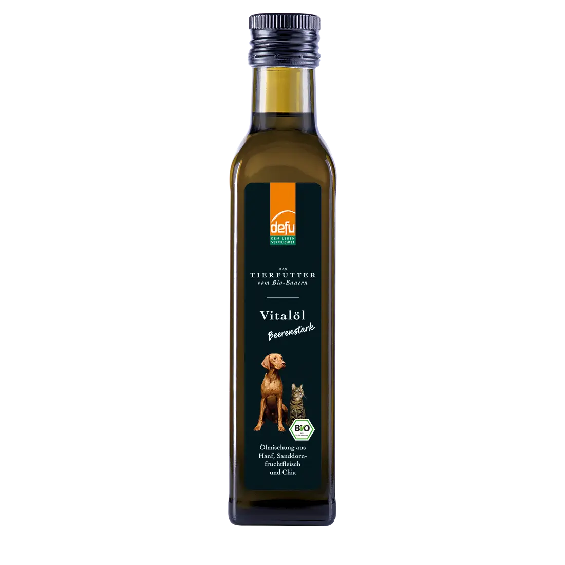 Unser defu Vitalöl Beerenstark ist eine exklusive Mischung verschiedener hochwertiger Bio-Öle für Hunde und Katzen. Die Grundlage dieser erlesenen Komposition ist Hanföl mit 93 %. Eingemischt werden 4 % Sanddornfruchtfleisch und 3 % Chiaöl.