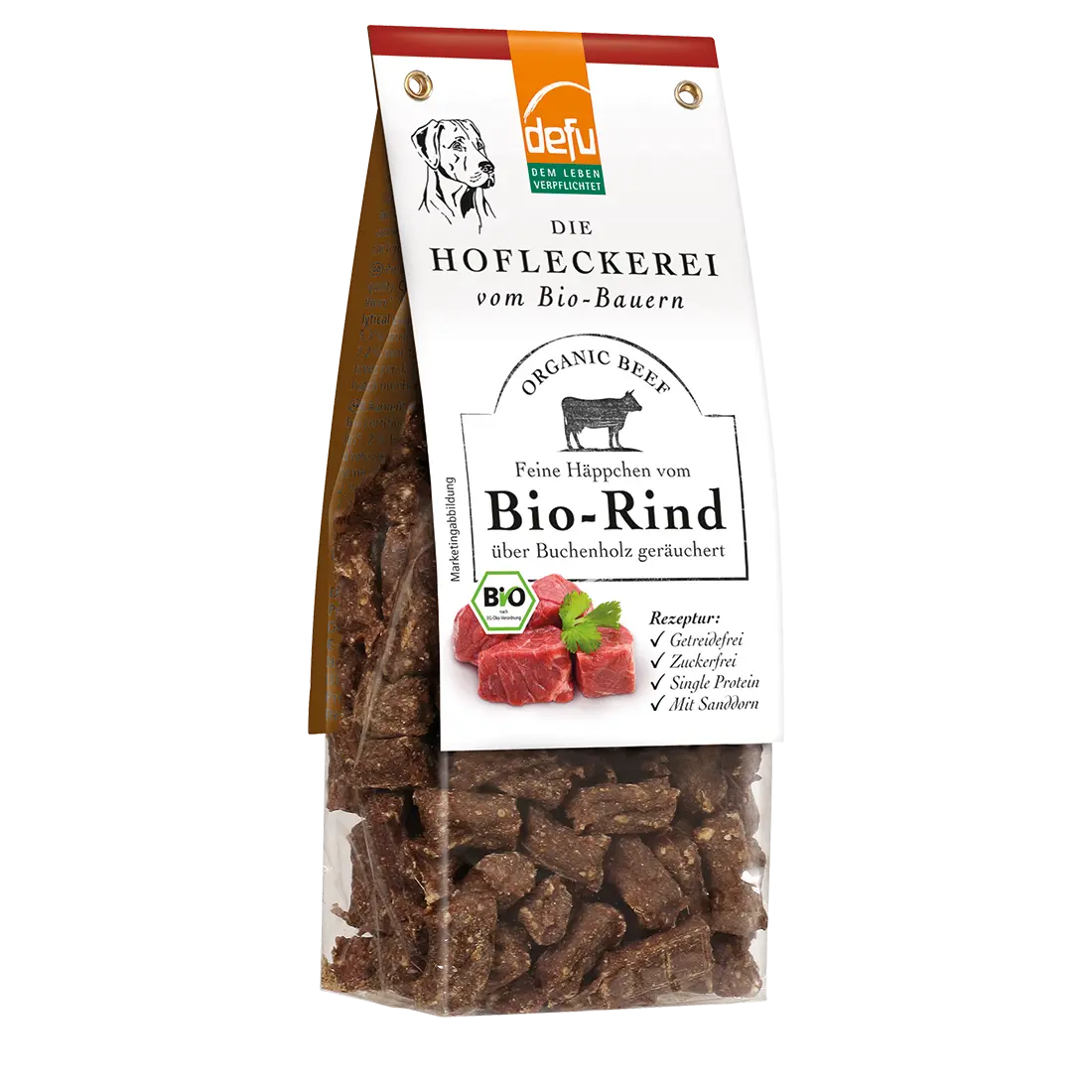 Feine Trainings-Häppchen vom Bio-Rind über Buchenholz geräuchert.