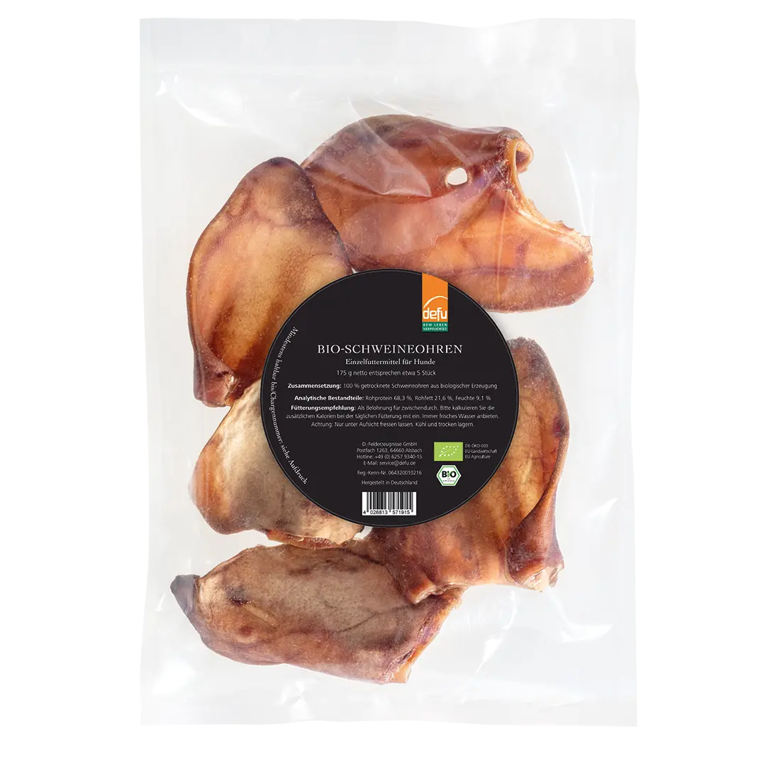 Unsere naturbelassenen, schonend getrockneten Bio-Schweineohren sind ein wahres Kauvergnügen für Hunde allen Alters und jeder Rasse. Kauen fördert die Zahngesundheit und die Durchblutung des Zahnfleisches und kann zur Reinigung der Zähne beitragen. Zusätzlich bieten sie eine artgerechte und langanhaltende Beschäftigungsmöglichkeit, die gleichzeitig den natürlichen Kautrieb des Hundes stillt.